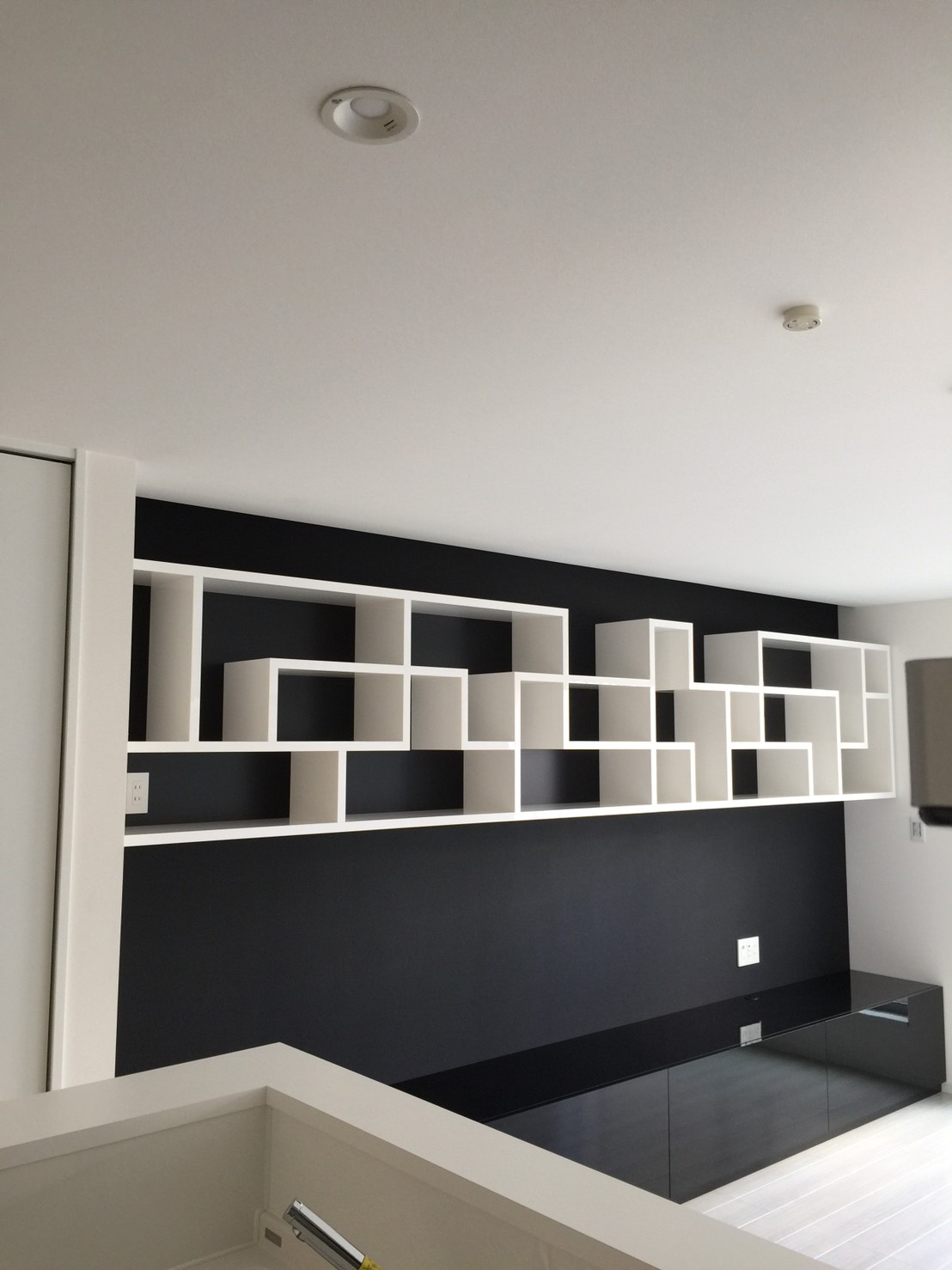 黒い壁が引き立つ棚に仕上がりました。