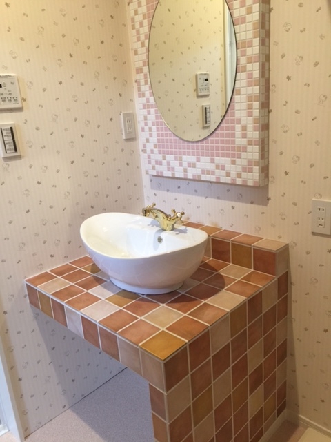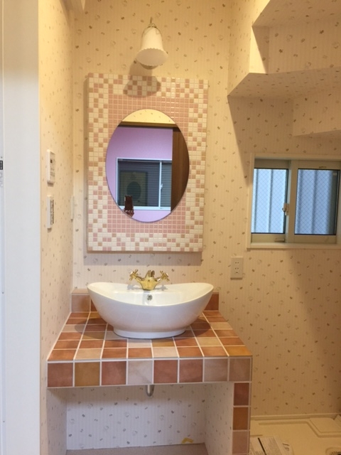お客様の要望で、明るく、清潔感のある洗面台を施工させていただきました。